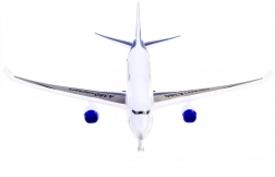 Dit grote model verkeersvliegtuig zal elke jonge luchtvaartfan blij maken. Hoogwaardige kunststof met oog voor detail, kleurrijke beplakking van romp, vleugels en staart en een duurzame constructie garanderen een lange levensduur bij dagelijks spelen. De geïntegreerde aandrijving maakt realistisch taxiën over de “startbaan” mogelijk, terwijl lichten en geluiden de sfeer van een echte luchthaven nabootsen.