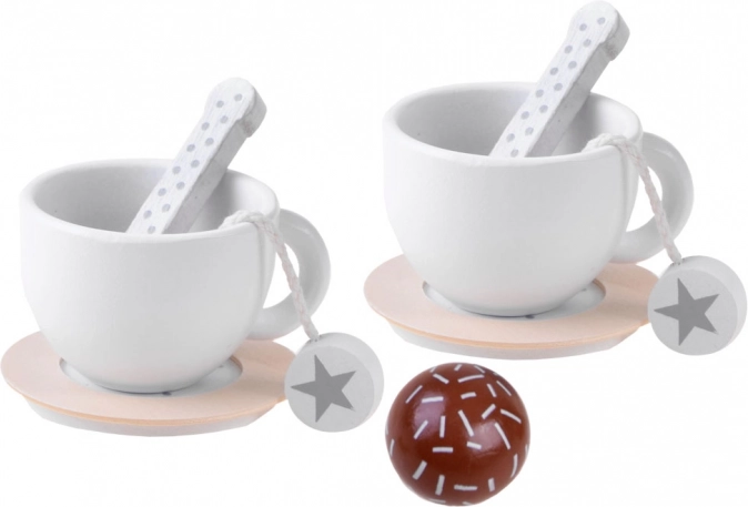 Alle onderdelen hebben fijne details – sterretjes en stippen – die de set extra charme geven. Kinderen kunnen “thee”, suiker en melk “serveren” en houten gebak aanbieden. De set ontwikkelt fijne motoriek, communicatie en creativiteit.