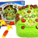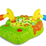 De set bevat een groen-bruin plastic bord met kleurrijke dierenkoppen en twee hamers, waardoor twee spelers tegelijk kunnen spelen. De kleurrijke afbeeldingen van dieren en planten op het bord spreken elk kind aan, dat zich met dit spel nooit zal vervelen. Kinderen hebben niet alleen plezier, maar leren ook nieuwe vaardigheden, zoals het herkennen van kleuren en geluiden.