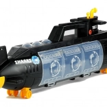 Een grote onderzeeër die op een dreigende haai lijkt, verbergt tal van interessante elementen. Wat zit erin? Auto’s van verschillende types en een helikopter! De onderzeeër met een dubbelzijdige sorteerder is een fantastisch cadeau voor een kind dat van voertuigen en onderwatermachines houdt.