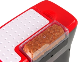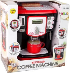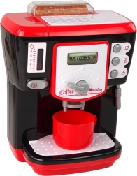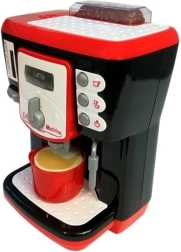 De zwart-rode koffiemachine is een echt interessant speeltje. Qua uiterlijk is hij gestileerd naar moderne automaten, waardoor hij gerust in de keuken naast het echte apparaat kan staan. Het speelgoed is uitgerust met een knop om het type te bereiden koffie te wisselen – Cappuccino, Latte en Macchiato. Aan de linkerkant van het apparaat zit een reservoir; na het omzetten met de knop begint er water uit de automaat te stromen! Aan de rechterkant zitten knoppen die verschillende modi van de koffiemachine simuleren. De set is ook voorzien van een imitatie van koffiebonen in de hopper en een kopje dat met de machine kan worden gevuld.