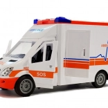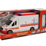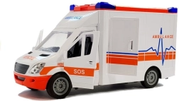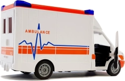 Een natuurgetrouw nagebouwde ambulance. Het voertuig is tot in detail uitgewerkt; het interieur is uitgerust met alle elementen van een echt voertuig, zoals een stuur, dashboard en stoelen. De ambulance heeft geluids- en lichteffecten die worden geactiveerd met knoppen op het dak. Het voertuig heeft wrijvingsaandrijving. De zij- en achterdeuren kunnen open en het dak is afneembaar. Daarnaast bevat de set een opvouwbare en afneembare reddingsbrancard. De auto is licht en mooi afgewerkt, werkt op batterijen die bij de set zijn inbegrepen. Het voertuig heeft rubberen wielen. Een geweldige ambulance voor het vervoeren van patiënten of andere taken tijdens reddingsacties.
