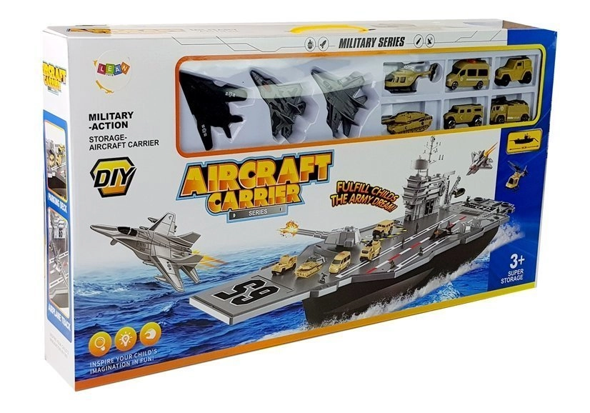 Wij presenteren een vliegdekschip voor kinderen die graag soldaatje spelen en tegelijk een passie hebben voor schepen, want dit is het beste onderdeel van de set. De set ontwikkelt verbeeldingskracht en creativiteit en stelt kleine soldaten in staat gevechtsplannen te maken. Je moet het zelf uitproberen; dit interessante speelgoed neemt je mee naar de wereld van de maritiere krijgsmacht. Beweegbare kanonnen en geschutstorens op het dek maken het spel nog realistischer. Het speelgoed valt op door zijn formaat: het is maar liefst 86 cm lang.