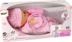 De pop draagt een roze pyjama met stippen. Op haar hoofd heeft ze een schattig mutsje. Alles past perfect bij elkaar. Bij het indrukken van de romp laat de pop geluiden horen die kenmerkend zijn voor een kleine baby: huilen, brabbelen, het woord "mama" enz. Bij elke druk verrassen de geluiden. De pop heeft beweegbare armen en benen, en de kleding is afneembaar, waardoor je de garderobe kunt veranderen.