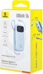 Powerbank Baseus QPow2 20.000 mAh 30 W met ingebouwde USB‑C-kabel (blauw)