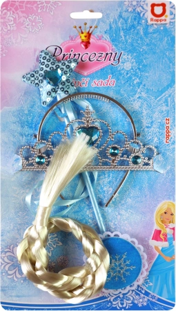 Word een betoverende winterprinses met deze prachtige set, bestaande uit een kroontje, een toverstaf en een elegante vlecht in blauwe tinten.