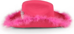 Deze stijlvolle roze cowboyhoed met een fonkelende kroon van steentjes maakt van elke outfit een echte blikvanger. De opvallende verenrand voegt speelsheid en flair toe, waardoor hij perfect is voor themafeestjes en verkleedpartijen.