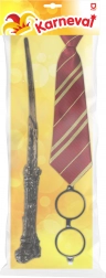 Verander jezelf in een oogwenk in een goochelaar! Deze carnavalsset bevat een kunststof toverstok, ronde bril en een gestreepte stropdas – perfecte accessoires voor carnaval, gemaskerd bal en Halloween. De stok is ongeveer 40 cm lang en past perfect bij elk heksen- of tovenaarskostuum.
