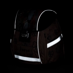 Lichte schoolrugzak uit de Premium Light-serie met paardenmotief, combineert een laag gewicht tot 900 g, ergonomische padding en een praktische indeling voor overzichtelijke opslag van schoolspullen. Biedt een inhoud van 27 l, comfortabele brede gewatteerde schouderbanden met borstband en aansnoerriemen, en reflecterende elementen voor extra veiligheid. Ideaal voor jongere schoolkinderen vanaf een lengte van ca. 121 cm.