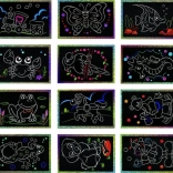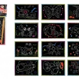 Deze set krasplaatjes is ideaal voor de eerste creatieve stappen. Het eenvoudige principe van het wegkrassen van het hele motief zonder ingewikkelde details is makkelijk te begrijpen en het resultaat is meteen zichtbaar: prachtige glinsterende en kleurrijke afbeeldingen met een fraaie glans.