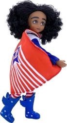 De set bevat een opvallende rode cape, een T-shirt met de tekst “toekomstige presidente”, blauwe schoenen met sterren en vleugeltjes en een combinatie van short en legging. Een ideaal cadeau voor kinderen vanaf 3 jaar dat empathie, verbeeldingskracht en rollenspel stimuleert.