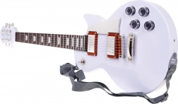 Ontdek een leuke muziekset die eruitziet als een echt instrument en kinderen motiveert om te spelen. De witte elektrische gitaar met headsetmicrofoon stimuleert de ontwikkeling van de fijne motoriek, ritmegevoel en zelfexpressie.