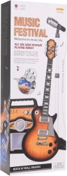 - Inhoud van de set: elektrische gitaar, microfoon op statief, versterker, jackkabel, schouderriem