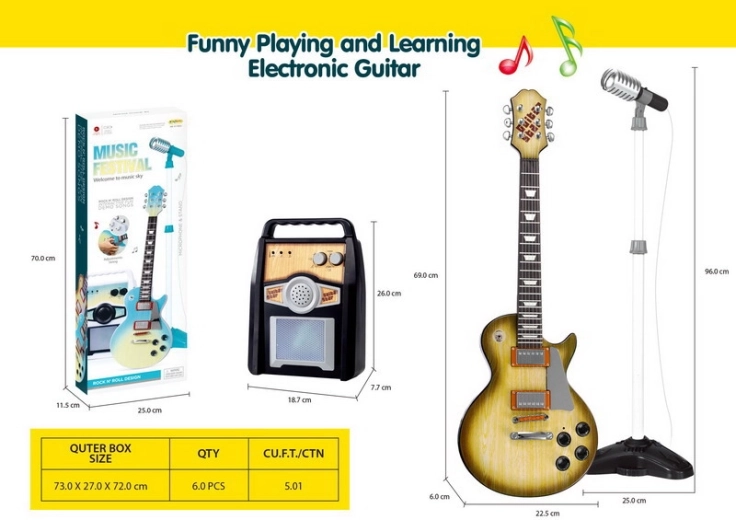 Ter motivatie voor het eerste spelen zijn er voorgeprogrammeerde ritmes en begeleidingsmelodieën, plus volumeregeling en een verstelbare schouderriem voor comfortabel dragen van de gitaar. De set ontwikkelt de fijne vinger motoriek, het muzikaal gehoor en het ritmegevoel, en biedt veel plezier voor solo-optredens en familieconcerten.