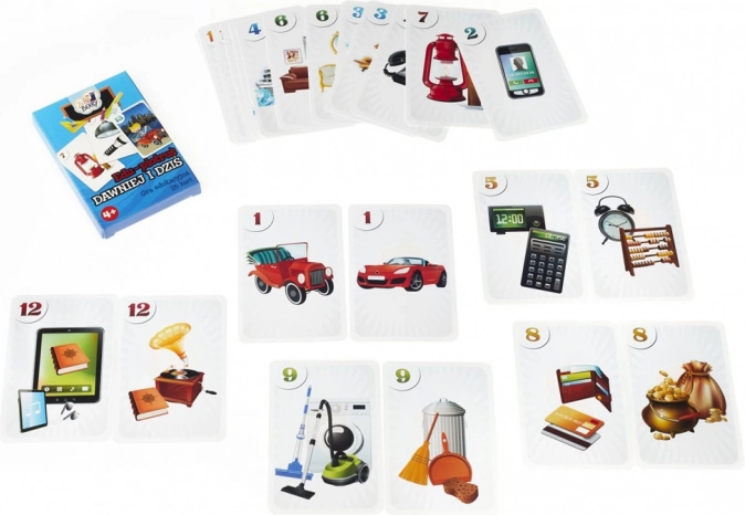 Ontdek het leuke, educatieve kaartspel van Muduko, dat spel en leren combineert. De set bevat 25 kaarten met kleurrijke illustraties: 12 paren van voorwerpen uit het verleden en het heden en één zwart-pietkaart. Kinderen leren voorwerpen herkennen, hun gemeenschappelijke functie te zoeken en ontwikkelen logisch denken en kennis over technologische vooruitgang.