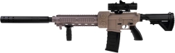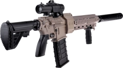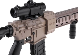 Automatisch herladen, elektronisch schieten, verschuifbare optiek, verschuifbare voorgrip, schouderriem