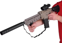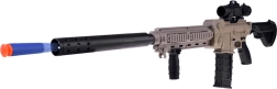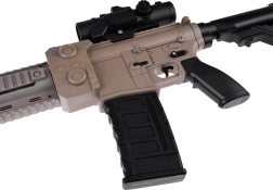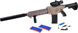 De lichte constructie van duurzaam kunststof en de verstelbare voorgrip verhogen het comfort tijdens het spelen. De ver schuifbare optiek helpt bij nauwkeurigere treffers op langere afstand, terwijl het afneembare magazijn snel bijvullen mogelijk maakt. Er wordt een 3,7 V/500 mAh accu en oplader meegeleverd, zodat je na het opladen meteen in actie kunt komen.