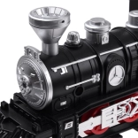 Deze gedetailleerd uitgewerkte elektrische treinbaan biedt een authentieke ervaring van een klassieke stoomtreinrit. De locomotief wordt aangedreven door een 800 mAh-accu (meegeleverd), rijdt zelfstandig over de rails en heeft dankzij rubberen banden op de achterwielen betere tractie. Voor maximale realiteit zijn er een rode frontlamp, geluidseffecten en rook uit de schoorsteen.