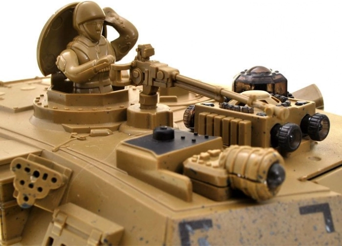 Voorste LED-lampen, torenverlichting en achterste indicatoren creëren de sfeer van nachtoperaties. Het te openen luik biedt plaats aan de meegeleverde tankcommandant.