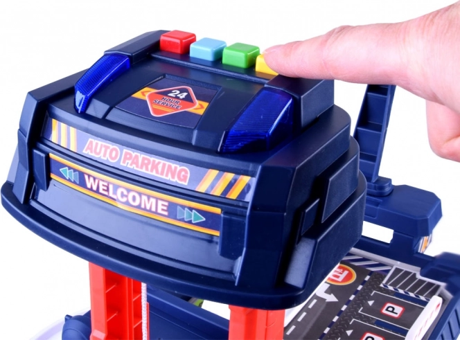 Grote interactieve parkeergarageset met 4 verdiepingen en elektrische lift
