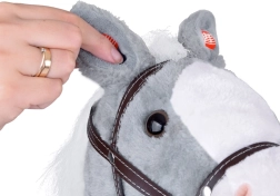 Knoppen op de oren activeren hinnik- en galopgeluiden, terwijl het paardje de mond opent en sluit, wat het spel extra realistisch maakt.