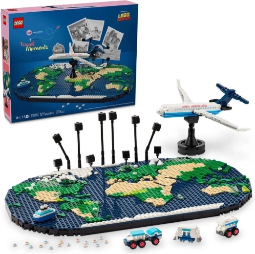 De creatieve set Reisherinneringen LEGO is het perfecte cadeau voor reizigers en gezinnen die van avontuur houden. De set bevat een wereldkaart om te bouwen, een Wonderliner vliegtuig, vier micro-modellen van voertuigen en vele andere accessoires, waaronder 20 locatieplaatjes en 10 fotohouders.
