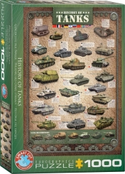 Duik in de wereld van gepantserde geschiedenis met een puzzel van 1000 stukjes, waar niets is wat het lijkt. De geschiedenis van tanks wordt weergegeven in een gedetailleerd ontwerp, waarbij bij elke tank de exacte specificaties zoals hoogte, breedte, gewicht en maximale snelheid zijn vermeld.