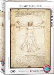 EUROGRAPHICS brengt een puzzel met het thema van de beroemde Vitruviaanse man. De teksten op de afzonderlijke stukjes zijn in vier talen: Engels, Frans, Spaans en Duits.