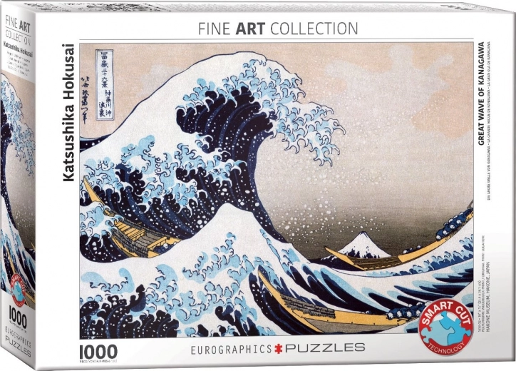 Puzzel EUROGRAPHICS De grote golf bij Kanagawa, 1000 stukjes. Niet-raster stans, ongewone vormen en hogere moeilijkheidsgraad. Afmeting 67,63 × 48,89 cm.