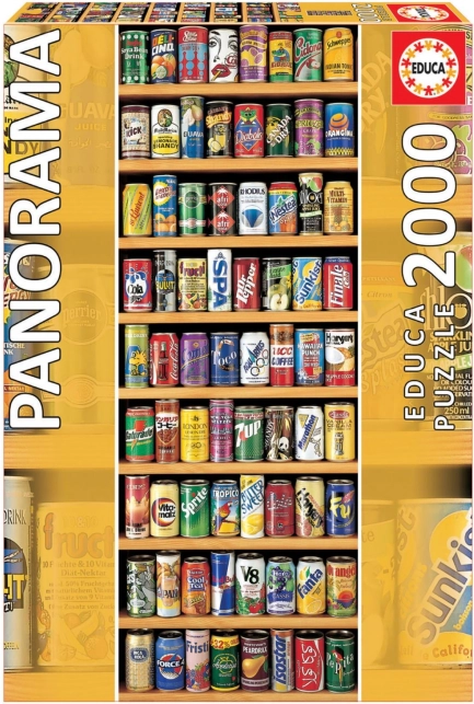 Origineel verticaal panorama voor puzzelliefhebbers: puzzel met het motief van blikjes met 2000 stukjes in een extra smal staand formaat. In de verpakking zit gratis lijm voor het eenvoudig fixeren van het voltooide beeld. Afmeting na voltooiing ca. 48 × 136 cm.