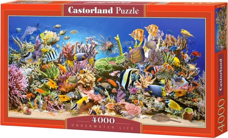 De panoramische puzzel CASTORLAND Onderwaterleven zal elke liefhebber van maritieme motieven bekoren. Dankzij de preciese stans en hoogwaardige druk komen de diepe kleuren en fijne details mooi tot hun recht. Het leggen van 4000 stukjes levert urenlange ontspanning én een uitdaging voor ervaren puzzelaars op.