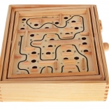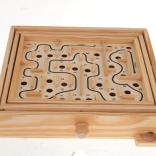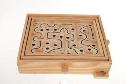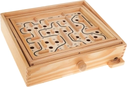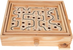 Duik in de wereld van plezier met het houten spel Doolhof, dat een unieke spelervaring biedt en tegelijk vaardigheden ontwikkelt. Dit spel is ontworpen om de concentratie en oog-handcoördinatie te stimuleren. Met behulp van de draaiknoppen aan de zijkanten kun je het speelbord eenvoudig kantelen en de knikker sturen.