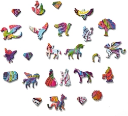 Houten Puzzel Regenboog Eenhoorn is een geweldige keuze voor puzzelliefhebbers die op zoek zijn naar een leuke en meeslepende ervaring. Deze uitdagende puzzel biedt kleurrijke en unieke stukjes die samen een afbeelding van een magische eenhoorn vormen.