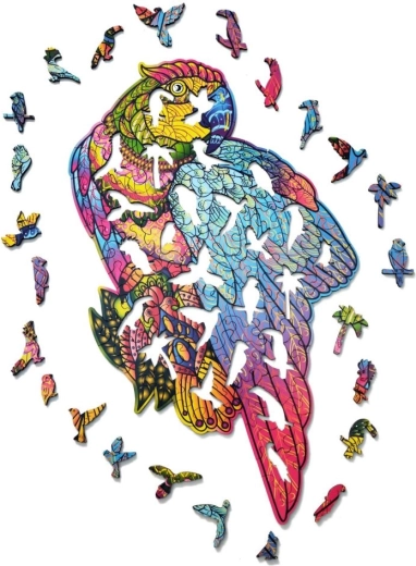 Deze houten puzzel in de vorm van een papegaai brengt plezier en uitdaging voor alle puzzelliefhebbers. Geschikt voor kinderen vanaf 14 jaar en dient niet alleen als speelgoed, maar ook als decoratief object. Elk stuk is uniek en geeft je interieur levendigheid dankzij de kleurrijkheid.
