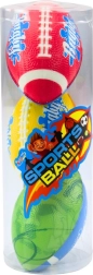 Leuke set van drie foam rugbyballen in verschillende kleuren voor veilig spelen in de tuin, op het veld en op het strand. Het zachte materiaal is vriendelijk voor kinderen en biedt lichte en veilige hantering, heldere kleuren voor betere zichtbaarheid en universele inzetbaarheid voor actieve beweging.