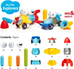 De set SmartMax Moji eerste avonturiers biedt een snelle en vrolijke instap in de wereld van constructiespel. Onderdelen in heldere kleuren verbinden veilig en eenvoudig dankzij sterke magneten, zodat kinderen veel geslaagde bouwpogingen beleven zonder frustratie.