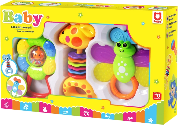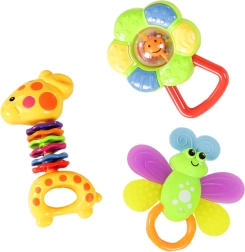 Met deze set vrolijke rammelaars zorgt u voor eindeloze uren vermaak voor uw baby. Elke rammelaar is zorgvuldig ontworpen met het oog op de veiligheid en het comfort van kinderen. Door de felle kleuren en interessante vormen stimuleren ze de zintuigen, ondersteunen ze de ontwikkeling van hand-oogcoördinatie en vergroten ze de nieuwsgierigheid.