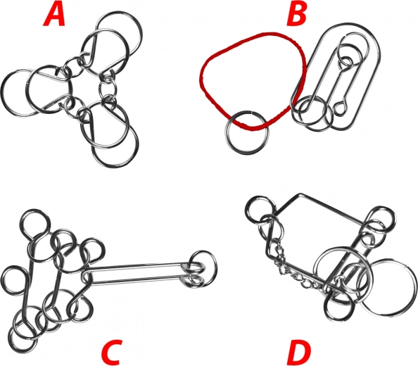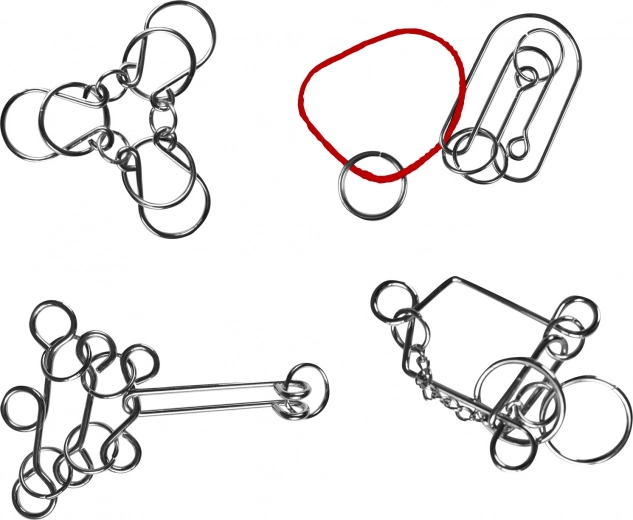 Deze set bevat vier unieke metalen puzzels die je logisch denken en fijne motoriek testen.
