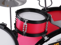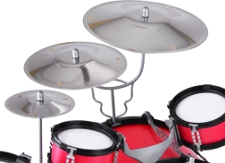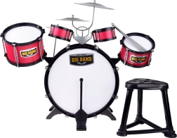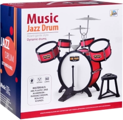 De set bevat alles wat nodig is - drums, bekkens en een krukje, zodat kinderen meteen kunnen beginnen met spelen.