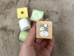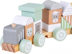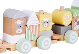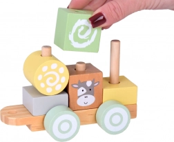 Het houten treintje is een ideaal speelgoed voor jonge kinderen. Het bestaat uit kleurrijke blokken met verschillende vormen en dierengezichten, zoals een koe, schaap, paard en kat, wat zorgt voor zeer aantrekkelijk spel. Kinderen kunnen vrij herindelen, stapelen en creëren, waardoor ze hun motoriek en verbeelding ontwikkelen.
