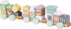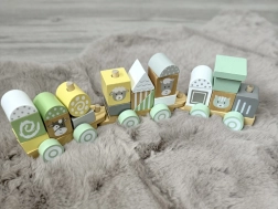 Elke wagon van deze trein is stevig gemaakt van duurzaam hout en kan gemakkelijk aan de andere worden gekoppeld, zodat er een lange trein ontstaat die kinderen over de vloer kunnen duwen. Pasteltinten geven het speelgoed een bijzondere charme en passen perfect in elke kinderkamer.