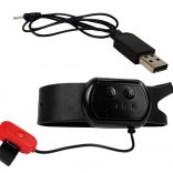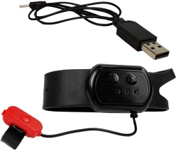 De polsband laad je op via USB, speeltijd tot 2 uur. De kiepwagen zelf werkt op 4× AA 1,5 V voor eenvoudig batterijwissel.