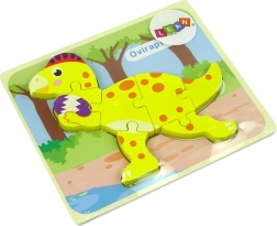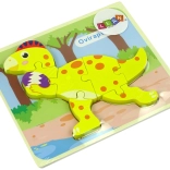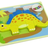 Leuke houten puzzel met dinothema voor kinderen vanaf 3 jaar. De stukjes van hoogwaardig hout hebben een dikte van 5 mm voor makkelijk vastpakken, heldere kleuren en eenvoudige vormen ondersteunen de fijne motoriek, concentratie en het geheugen. Keuze uit stegosaurus of oviraptor. Veilige speelgoed volgens EN71.