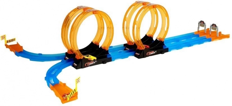 Deze kleurrijke racebaan met coole loopings is gemaakt voor snelheid en stunts. Autootjes met pull-back mechanisme hoef je alleen maar naar achteren te trekken en los te laten, waarna ze met volle vaart door de vier loopings schieten. De baan biedt plezier voor kinderen vanaf 3 jaar en stimuleert gezond competitiegevoel – wie haalt als eerste de finish?
