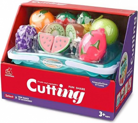 Mand met fruit, ideaal voor kinderen, stimuleert creativiteit en biedt plezier bij het spelen met het snijden van fruit.