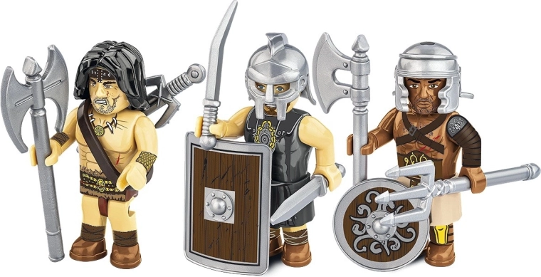 Je kunt hun wapenuitrusting, helmen en schilden wisselen en zo je eigen combinaties van krijgers creëren. De figuren zijn de perfecte aanvulling op de set Gladiatorenschool. Laat je inspireren door Spartacus, begin een opstand tegen de Romeinen en strijd tegen de ontelbare legioenen van het Imperium!