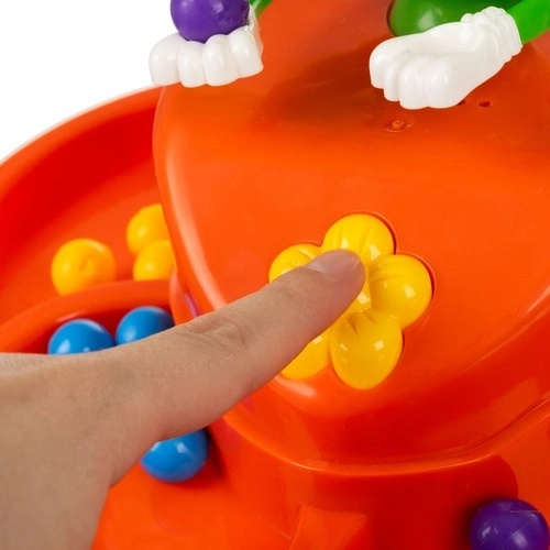 Met één druk op de ON/OFF-knop begint de pret. Vrolijke kleuren, meerdere niveaus en “handjes” voor het neerleggen van knikkers garanderen een aantrekkelijk en steeds opnieuw speelbaar spel.