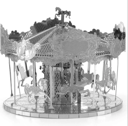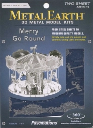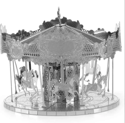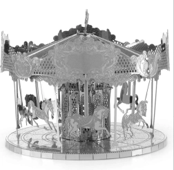 Ontdek de charme van klassieke kermissen in miniatuurvorm. Het draaimolenmodel uit de METAL EARTH-serie is nauwkeurig vervaardigd uit stalen plaatjes met verfijnde lasergravure, wat realistische details geeft aan de paardjes, het dak en de decoratieve panelen. Het in elkaar zetten vraagt geduld en vaardigheid, maar beloont met een opvallende designdecoratie die schittert op een plank of bureau.