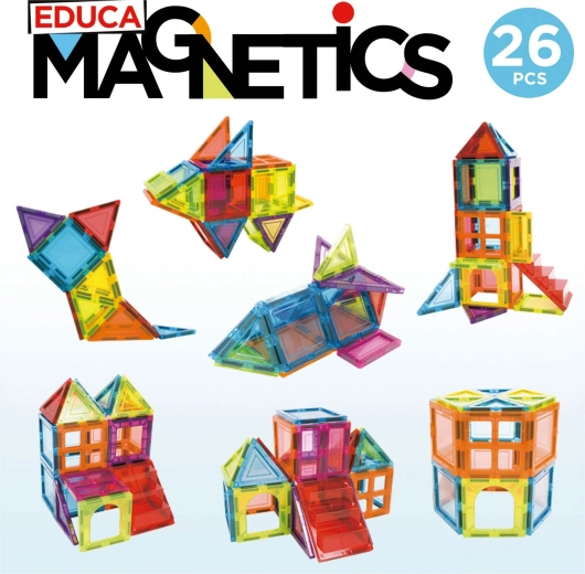Stel je voor - bouw - leer! Creatieve magnetische bouwset Magnetics van de Spaanse fabrikant EDUCA maakt het mogelijk om een grote hoeveelheid driedimensionale objecten te bouwen met behulp van tweedimensionale kunststof veelhoeken.