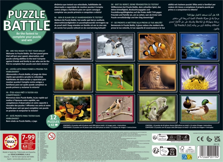Educa puzzel-battle Natuur: 12 mini-puzzels van 42 stukjes voor snelle, competitieve fun. Ontwikkelt observatievermogen, geduld en coördinatie. Geweldig voor kinderen en gezinnen.